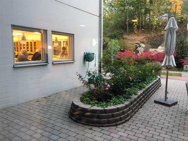 Här har hyresgästerna fullt utrustade egna lägenheter precis som i ett vanligt hyreshus. Men här har hyresgästerna också tillgång till 500 kvadratmeter gemensamma ytor med stort kollektivkök, matsal, allrum, hobbyrum, gym och bastu. Dessutom en prunkande trädgård med egna odlingar.